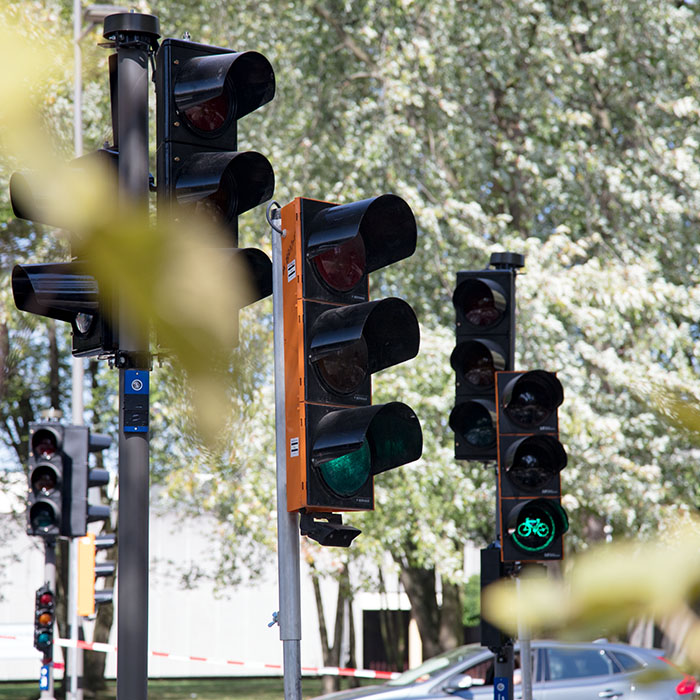 - Vanaf 8 verkeerslichten met datakabels + op maat geschreven programma.